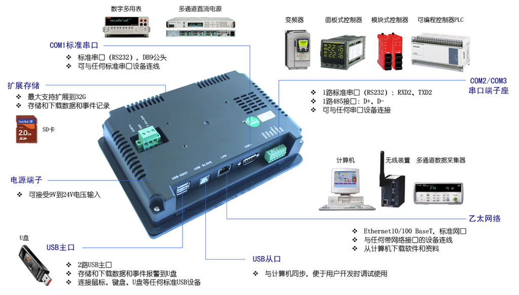 (2) 可與幾乎所有廠商的PLCs、控制器、變頻器、網(wǎng)絡(luò)攝像機(jī)和傳感器等多種工業(yè)設(shè)備無縫相連,完美協(xié)作;